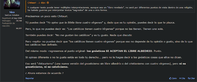 Eso será "chitaurismo" (una nueva versión del gnosticismo sin libre albedrío o del cristianismo con cuatro vírgenes), pero ni es gnosticismo, ni es catolicismo.